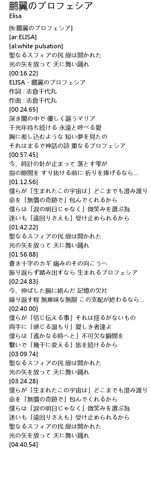 | [00:18.65] | ELISA - 鵬翼のプロフェシア |