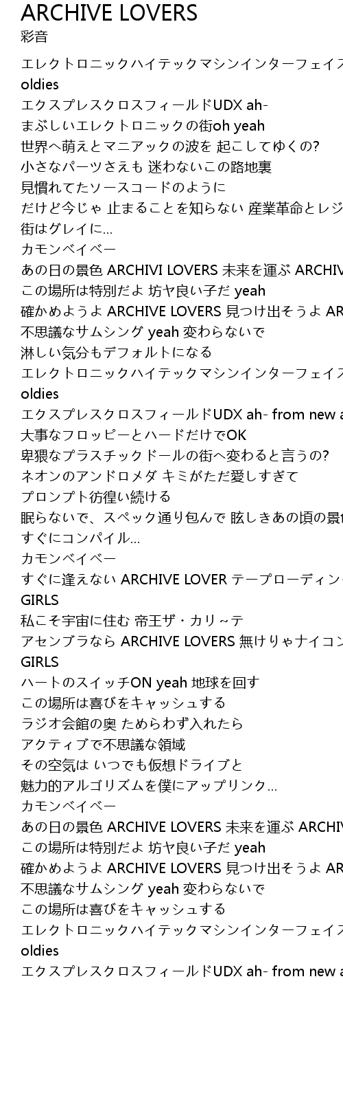 | 確かめようよ ARCHIVE LOVERS 見つけ出そうよ ARCHIVE LOVER GIRLS | |
