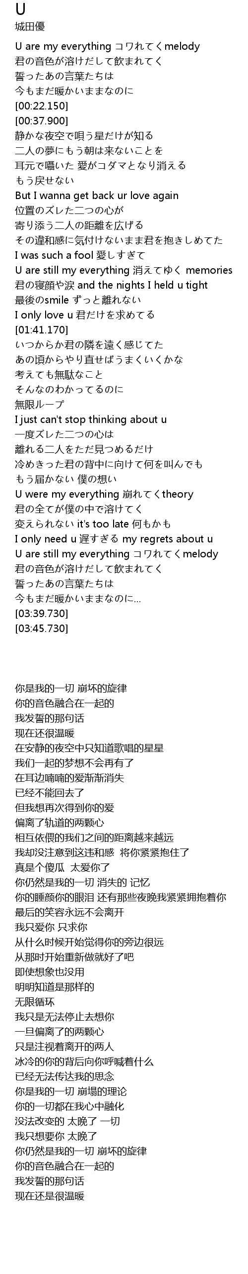 | [03:20.600] | U are still my everything コワれてくmelody |