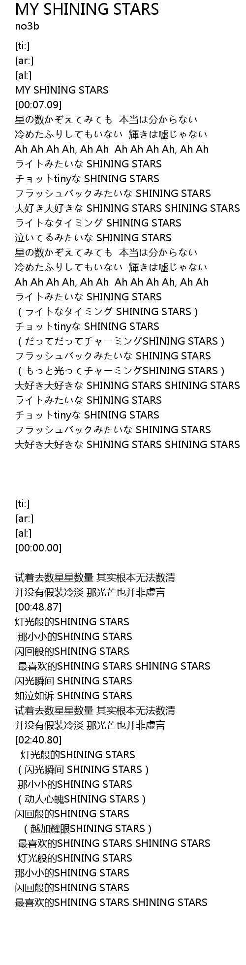 | [03:17.02] | フラッシュバックみたいな SHINING STARS |