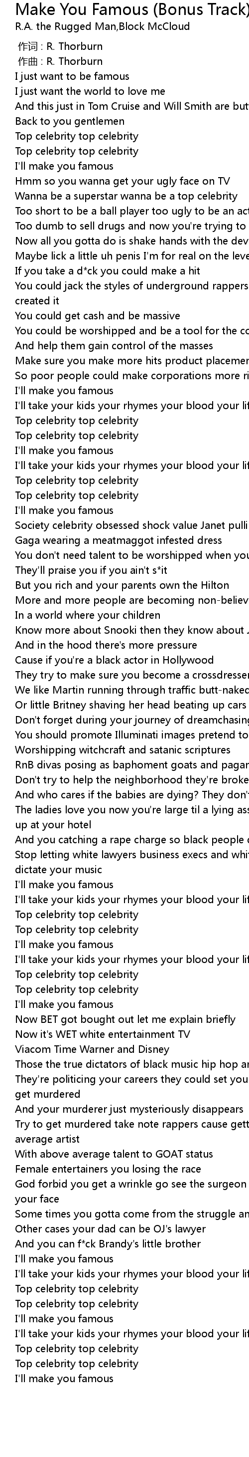 | [02:57.73] | Try to get murdered take note rappers cause getting killed can turn an average artist |