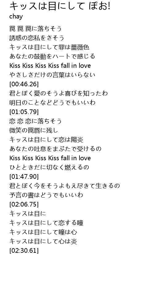 | [00:34.68] | Kiss Kiss Kiss Kiss fall in love |