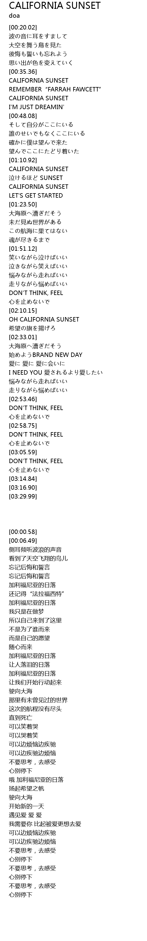 | [00:35.91] | CALIFORNIA SUNSET |