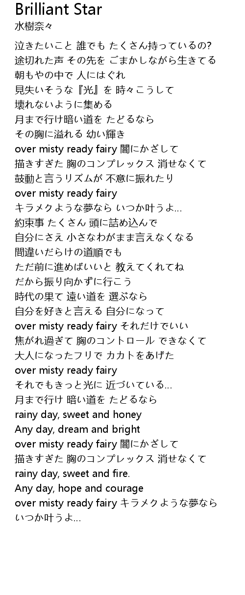 | [04:23.92] | over misty ready fairy キラメクような夢なら いつか叶うよ… |