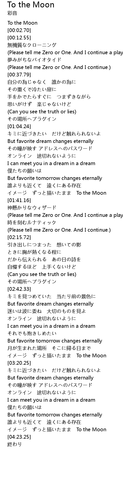 | [04:17.83] | miáo To the Moon |