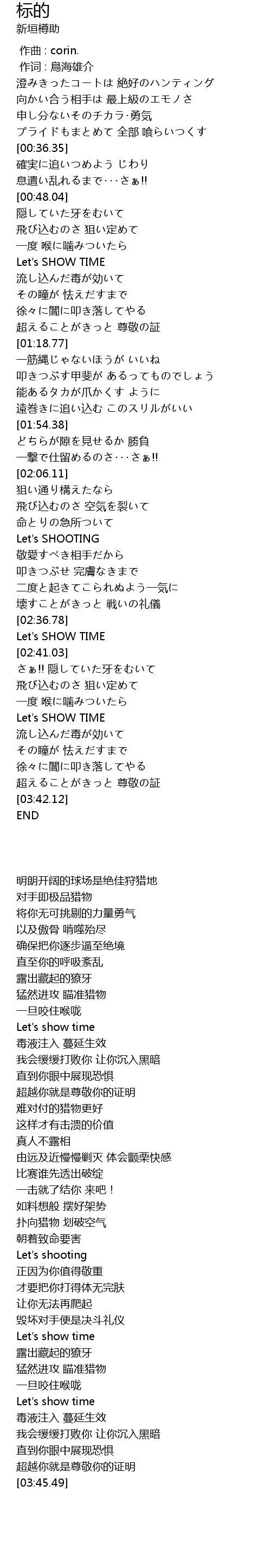 | [02:15.38] | Let' s SHOOTING |