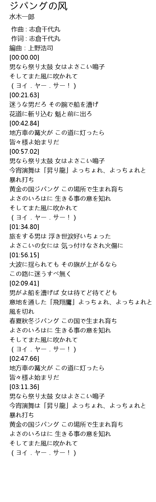 | [03:27.19] | 黄金の国ジパング この場所で生まれ育ち |
