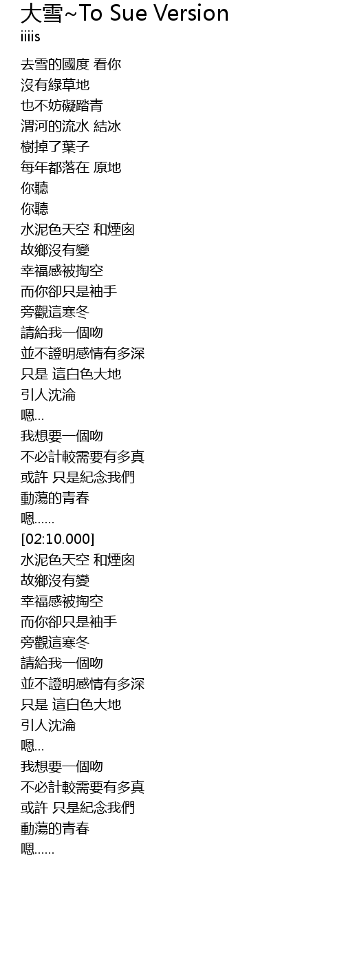 | [00:23.900] | 去雪的國度 看你 |