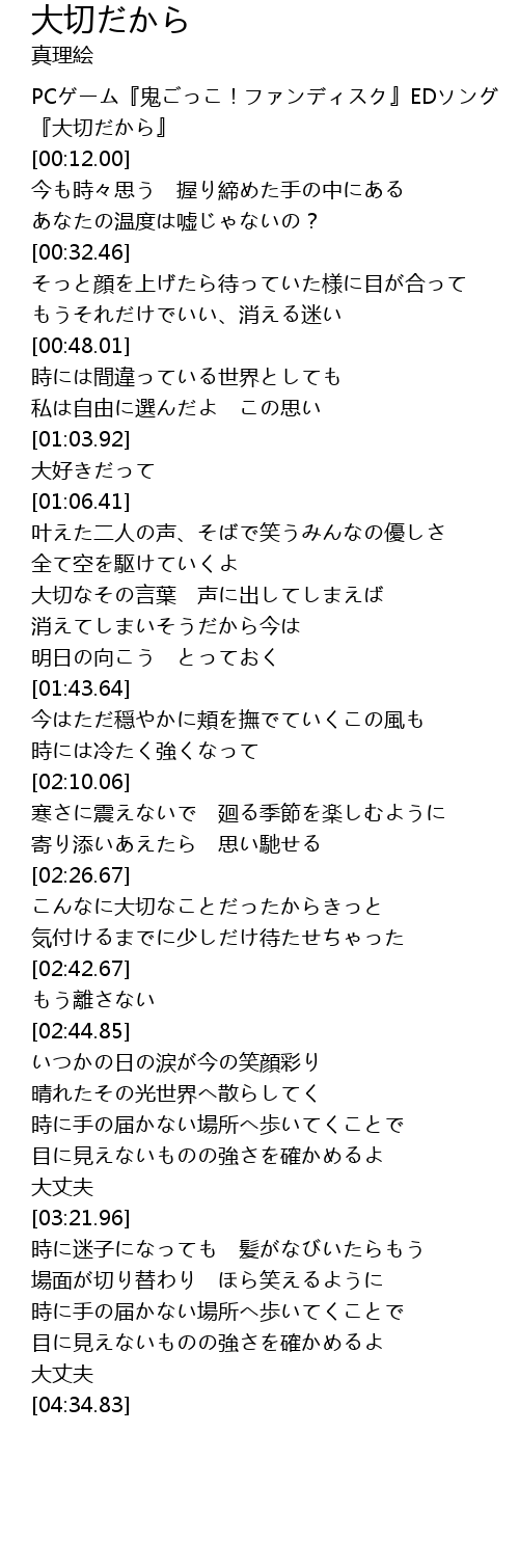 | [00:03.00] | 『大切だから』 |