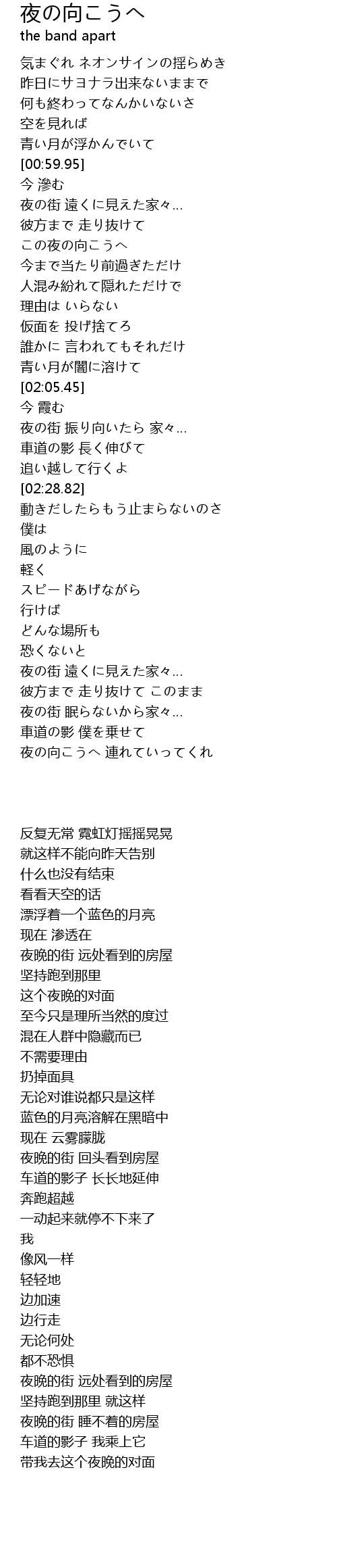夜の向こうへ 連れていってくれ |
