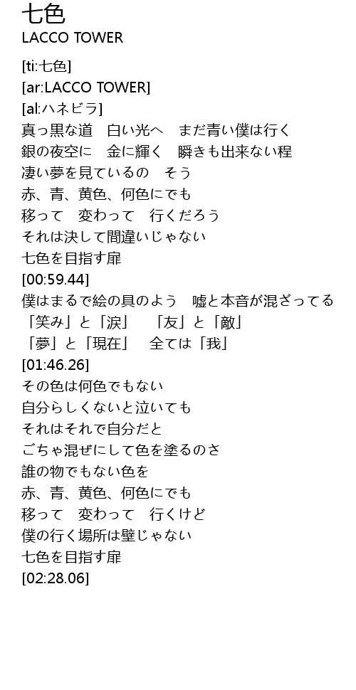 | [02:12.04] | 赤、青、黄色、何色にでも |
