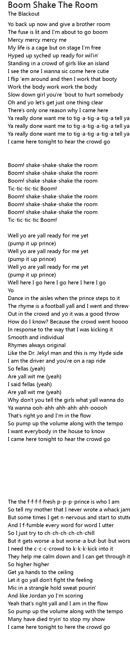 Boom! shake-shake-shake the room |