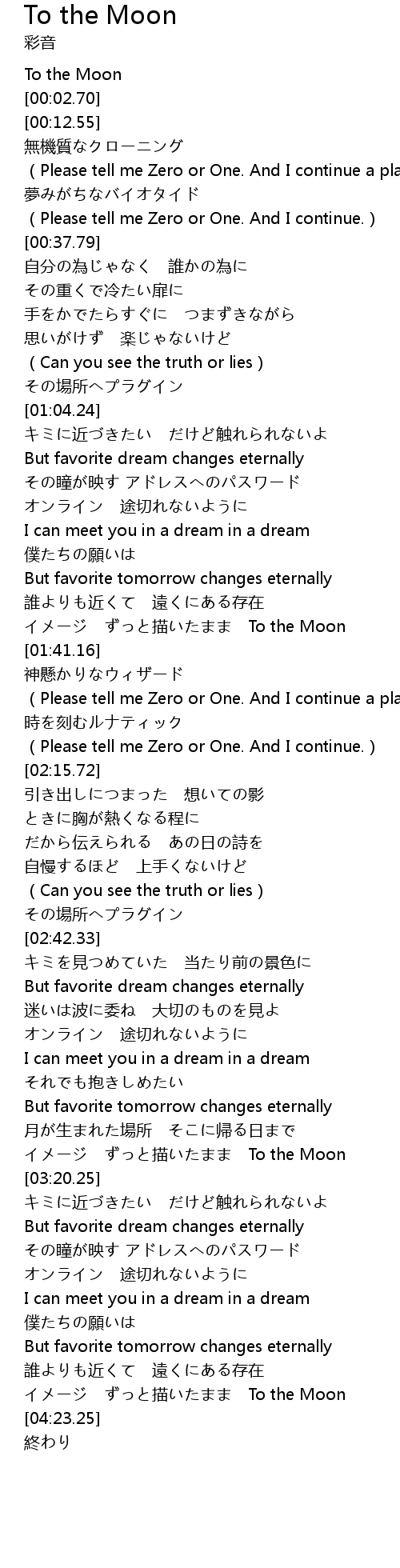| [03:14.75] | イメージ ずっと描いたまま To the Moon |