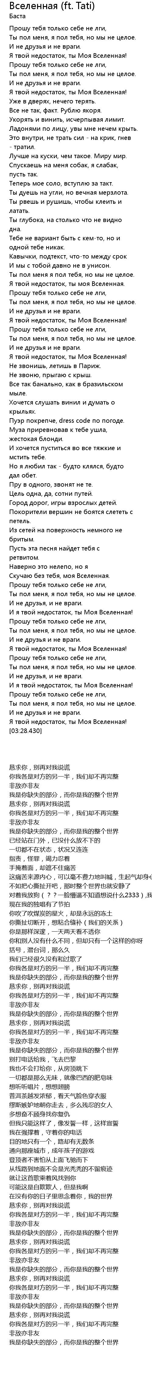 И я твой недостаток, ты Моя Вселенная! |