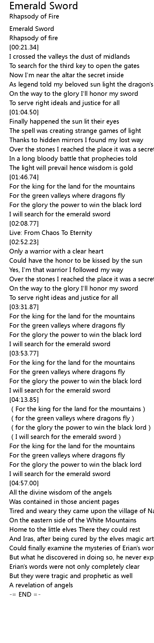 | [00:00.00] | Emerald Sword |