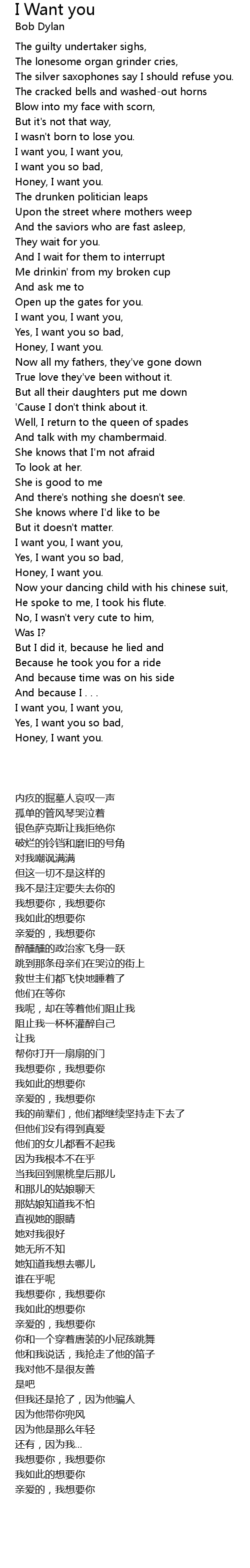 I want you, I want you, |