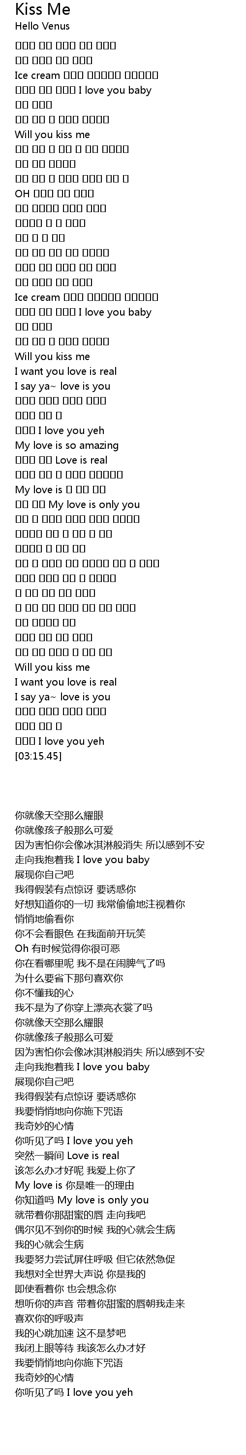 | [03:08.49] | 들리니 I love you yeh |