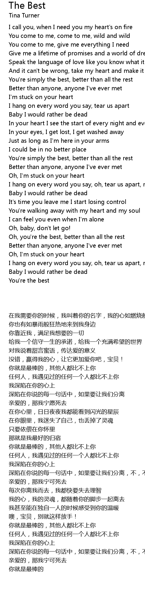 You're simply the best, better than all the rest |