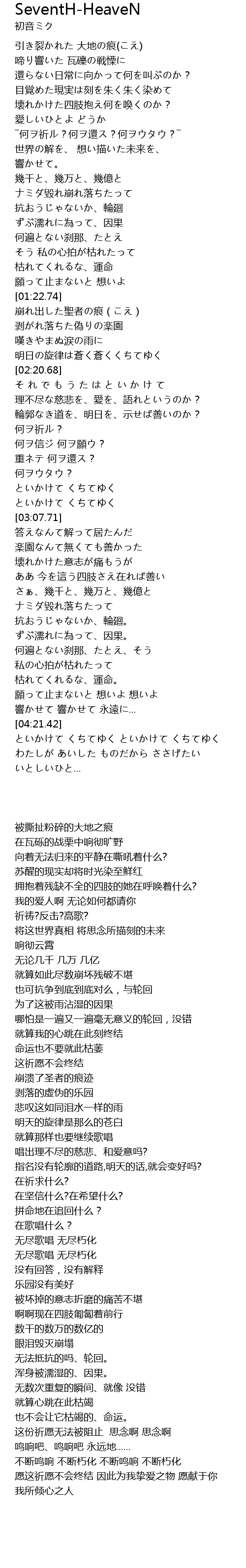 | [01:38.07] | 崩れ出した聖者の痕(こえ) |
