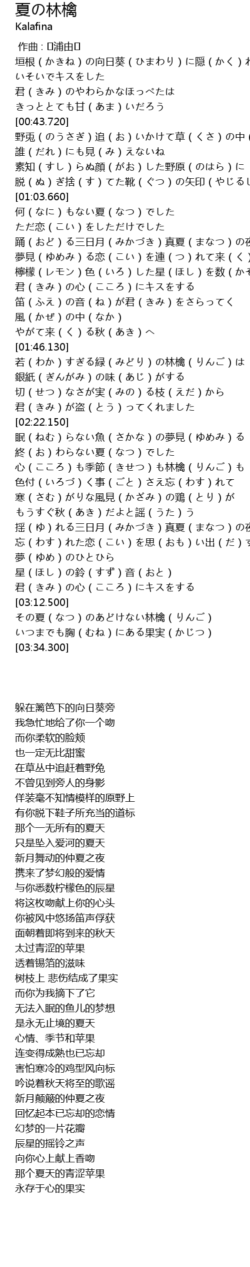 | [03:21.270] | その夏(なつ)のあどけない林檎(りんご) |