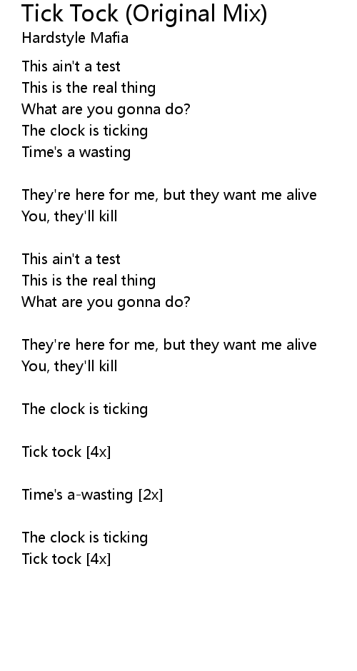 | Song | Tick Tock (Original Mix) |