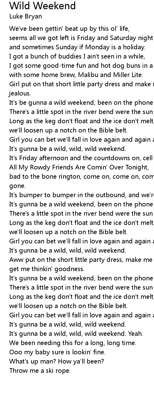 It's be gunna a wild weekend, been on the phone with all my friends. |