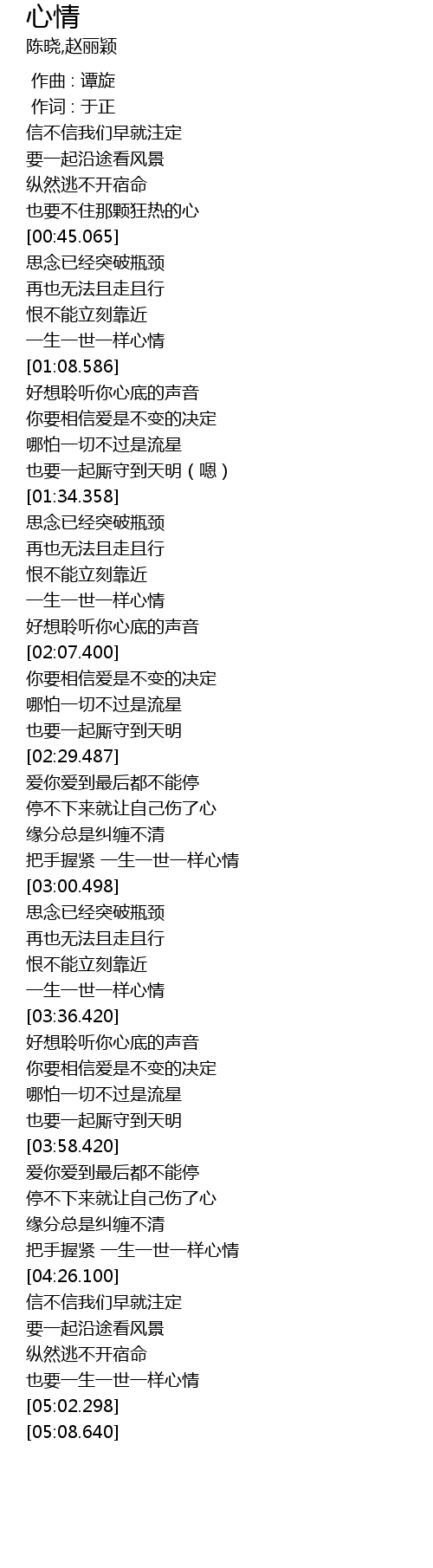 | [02:01.570] | yī shēng yī shì yí yàng xīn qíng |