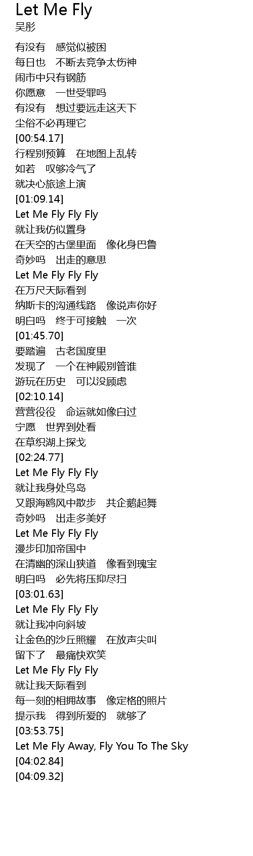 | [03:17.11] | Let Me Fly Fly Fly |
