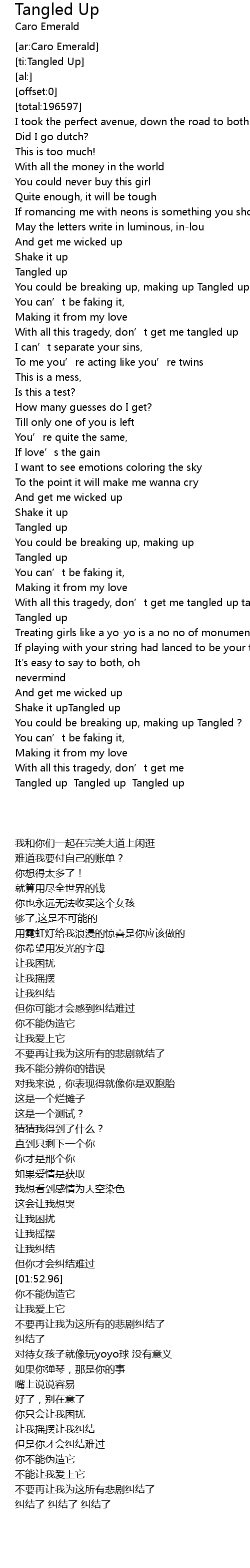 | [02:55.62] | Tangled up Tangled up Tangled up |