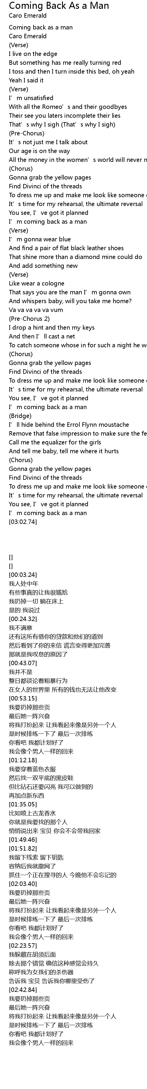 | [03:00.20] | I’m coming back as a man |
