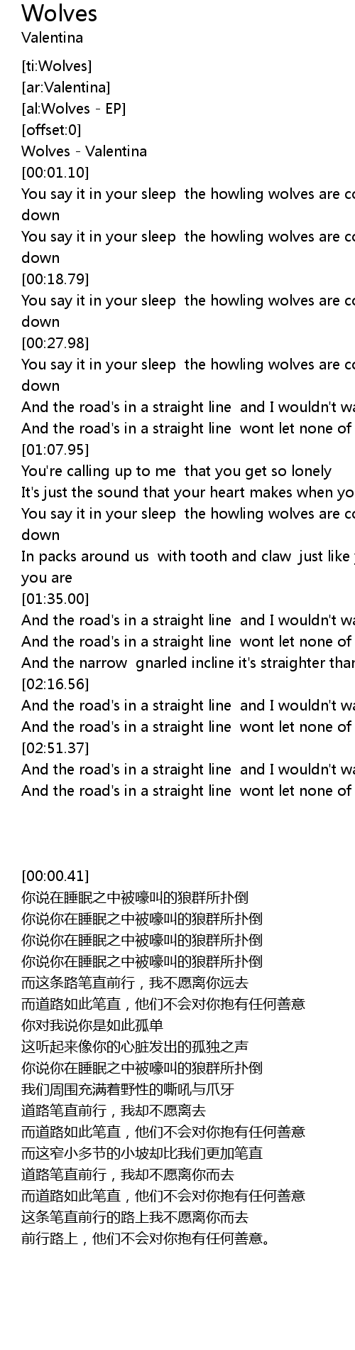 | [00:00.41] | Wolves - Valentina |