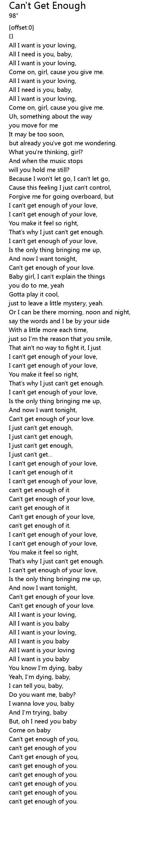 | [02:55.698] | Can' t get enough of your love. |