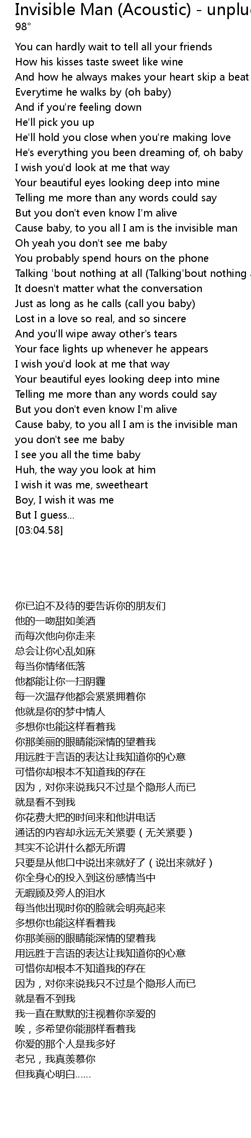 | [02:32.42] | Cause baby, to you all I am is the invisible man |