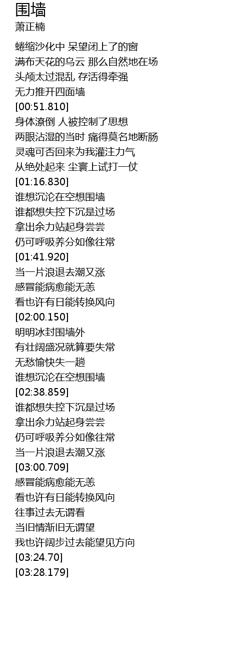 | [00:45.580] | 无力推开四面墙 |