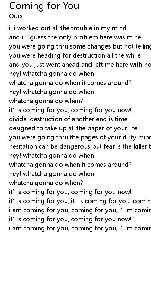 | it' s coming for you, it' s coming for you, coming for you now! | |