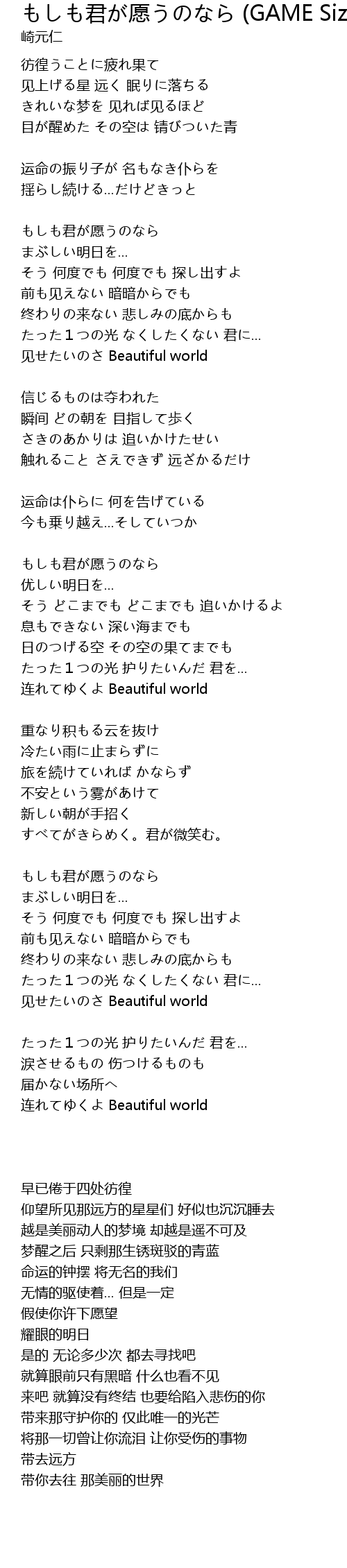 | Song | もしも君が愿うのなら (GAME Size) |