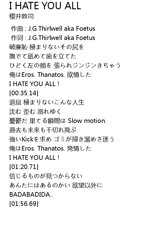 | [00:33.79] | I HATE YOU ALL! |