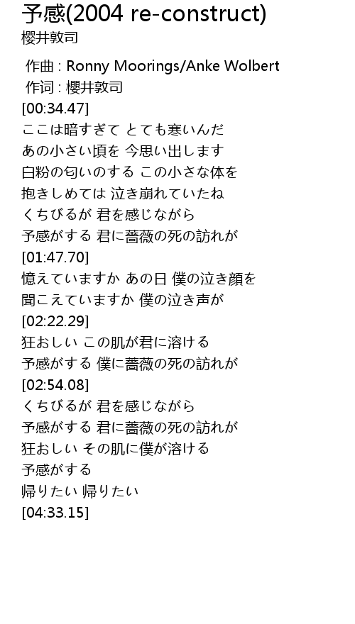 | [04:00.66] | 予感がする 君に薔薇の死の訪れが |