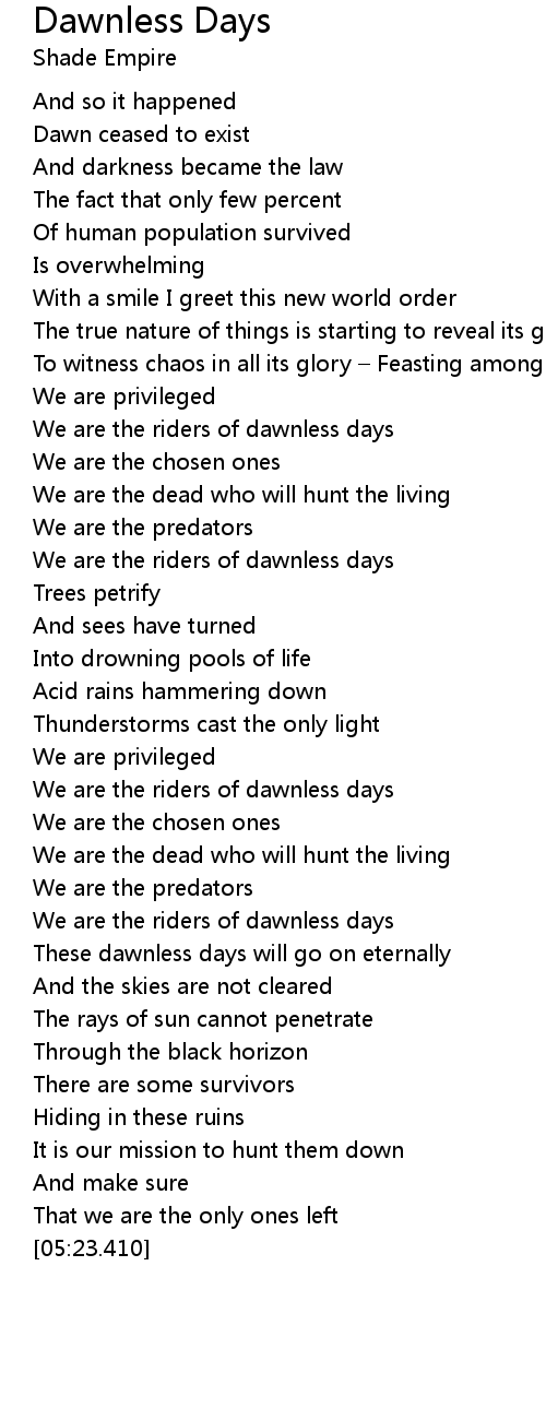 | [01:15.920] | To witness chaos in all its glory – Feasting among the earth |