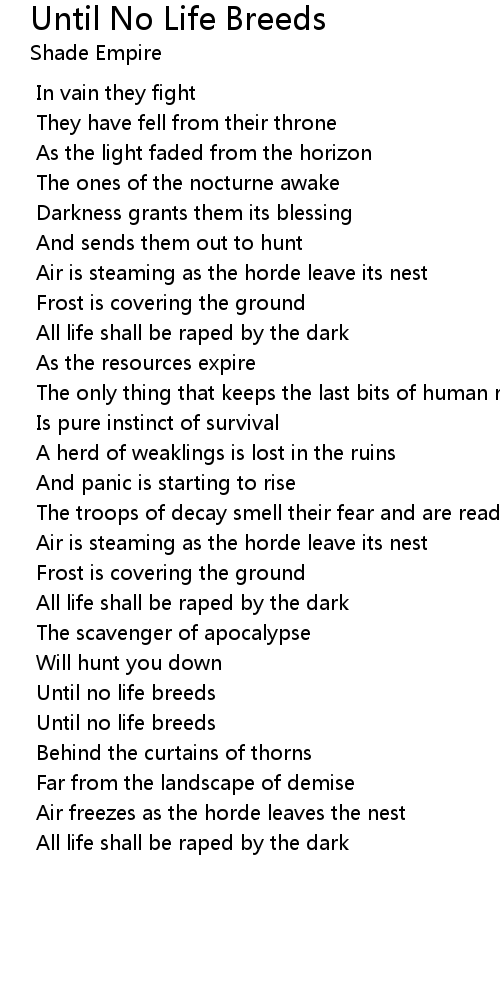 Until no life breeds |