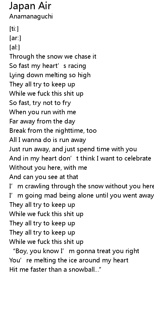 | [03:19.90] | Hit me faster than a snowball" |