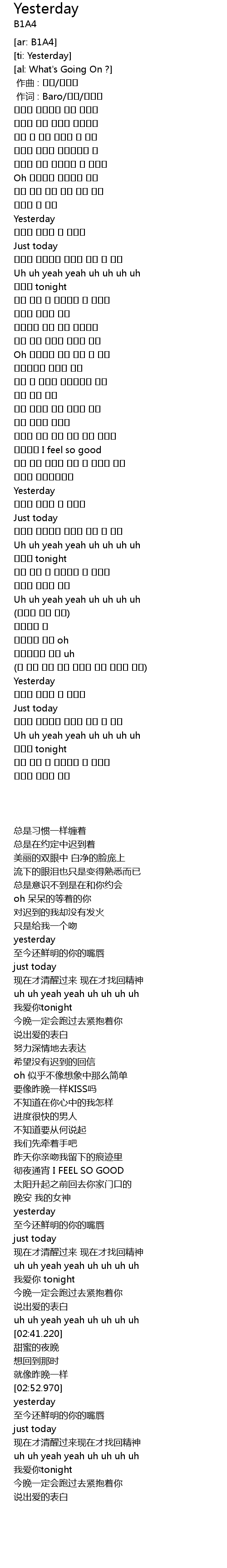 | [00:01.00] | 作词 : Baro/이기/서용배 |