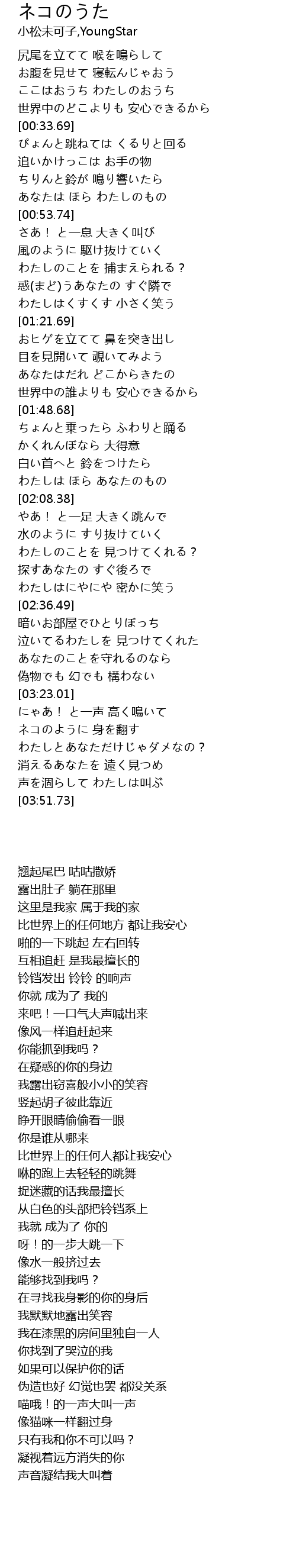 | [03:23.56] | にゃあ! と一声 高く鳴いて |