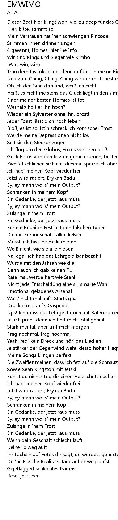 | Dieser Beat hier klingt wohl viel zu deep fü r das OK, nimm' s hin | |