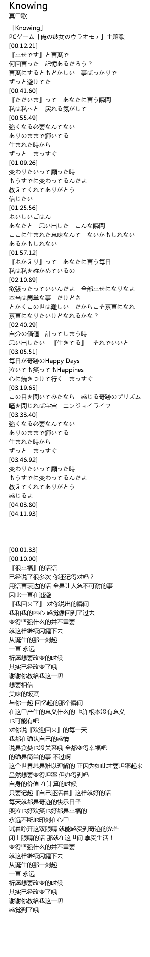 | [00:10.00] | PCゲーム「俺の彼女のウラオモテ」主題歌 |