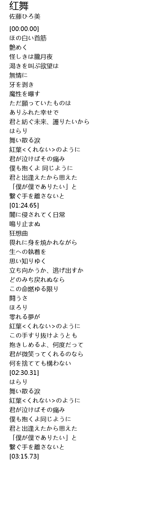 | [02:09.76] | 紅葉<くれない>のように |