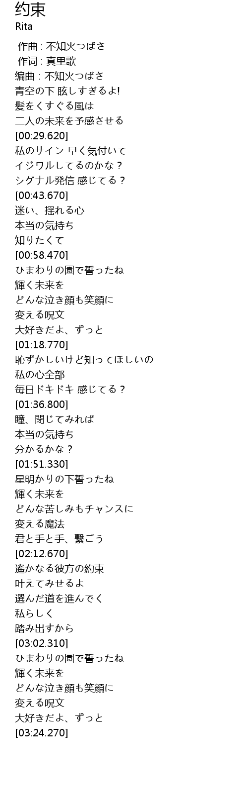 | [02:46.430] | 遙かなる彼方の約束 |