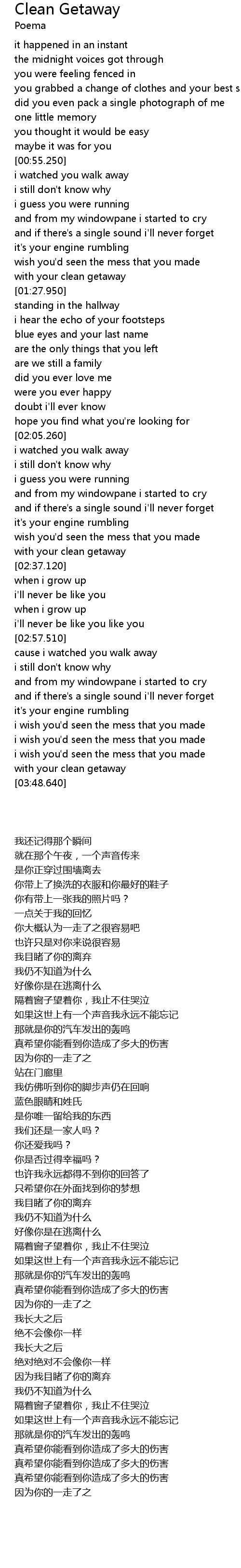 | [02:35.000] | with your clean getaway |