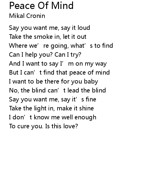 | But I can' t find that peace of mind | |