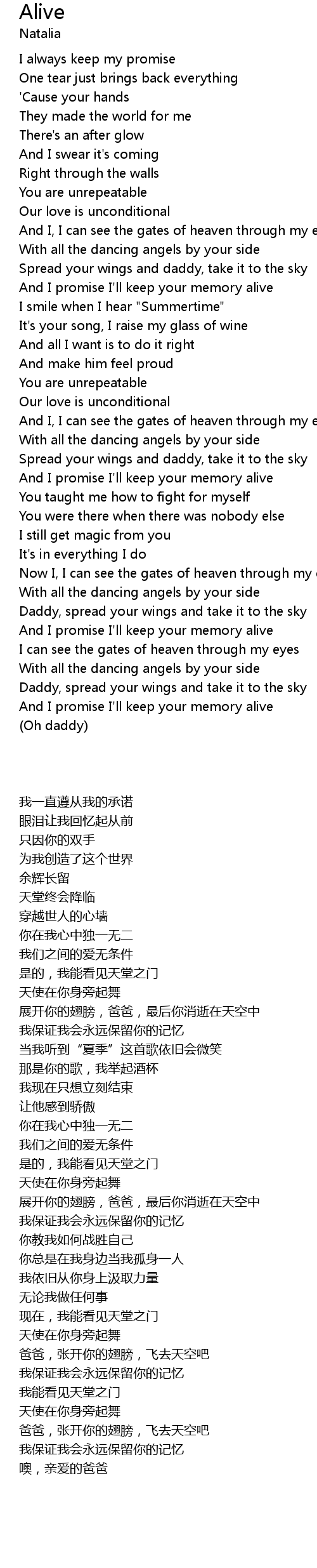 | [02:58.24] | And I promise I'll keep your memory alive |